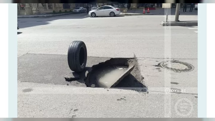 Bakının mərkəzində, Cəlil Məmmədquluzadə və Nəsib bəy Yusifbəyli küçələrinin kəsişməsində yeni təmir edilmiş yolda çökmə baş verib.